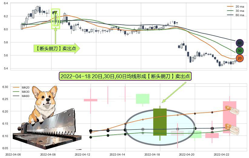 形态多维评估: ⚀ 2022-04-18日显现 20日-30日-60日均线 【断头铡刀】卖出点 看空信号,后市看跌,卖出