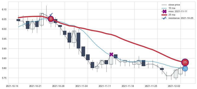 下跌趋势2021-10-14-2021-12-03,均线25确认关键阻力1处