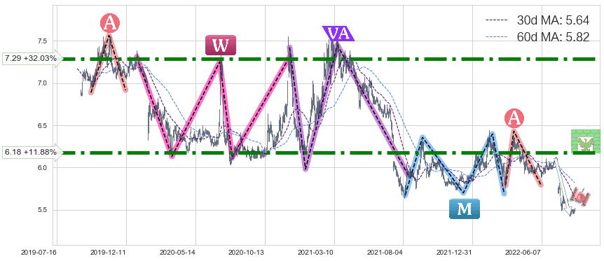 ♞ 30日均线:5.64,60日均线:5.82→ 快线<慢线