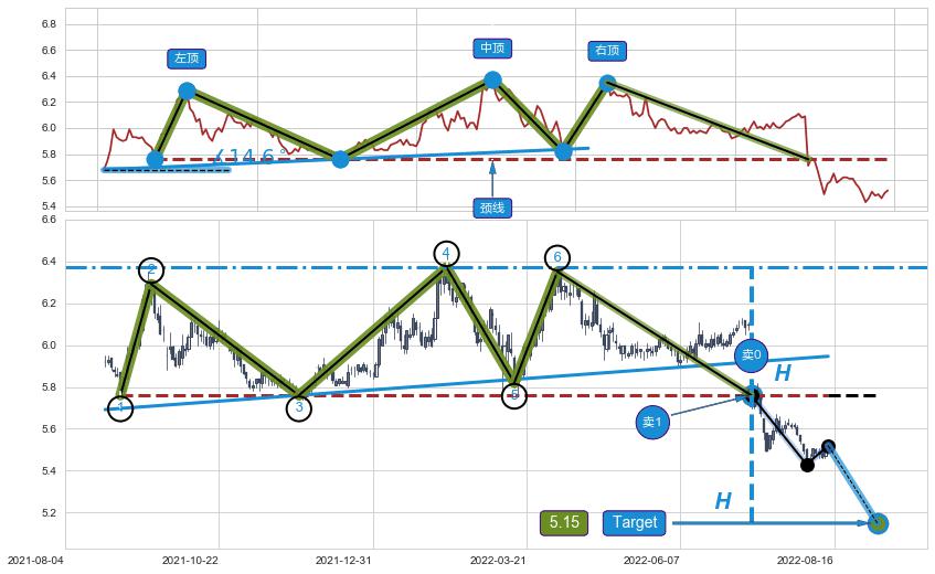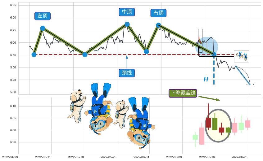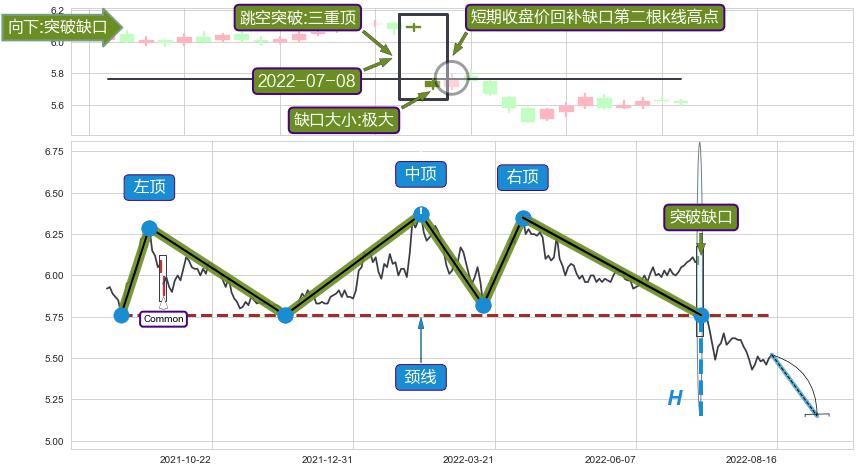 ➢ 【卖1】: 激进型 卖点→(2022-07-08: 5.76 )形成突破三重顶【反转】形态