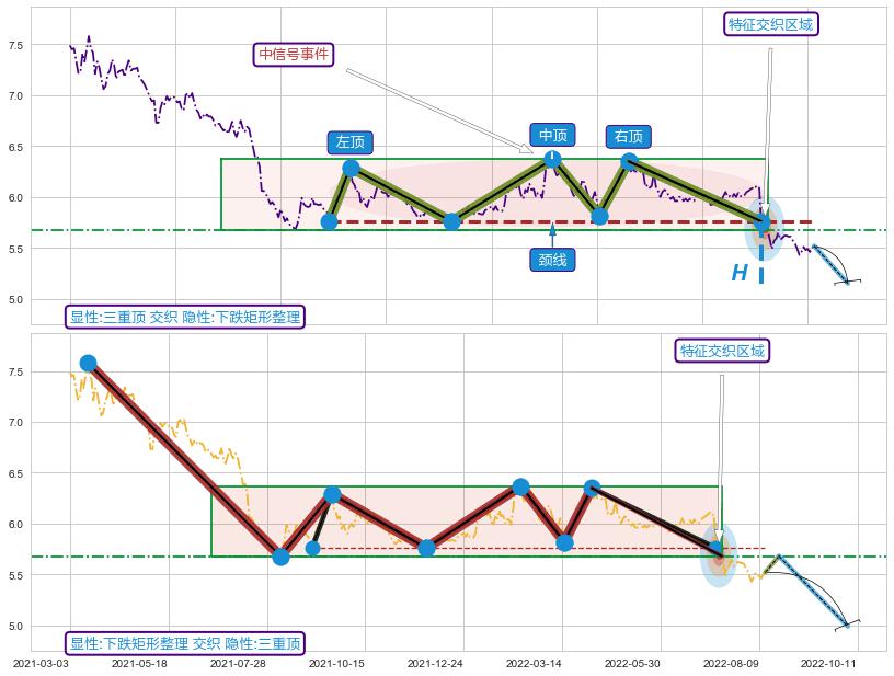 ➣ 【已确认突破】三重顶 起点:2021-08-30,突破点:2022-07-08,形态共206交易日