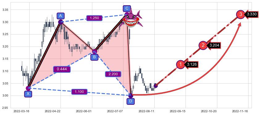 ➣ 已完成【鲨鱼】形态起点X: 2022-03-15, 终点D: 2022-07-15, 共83交易日