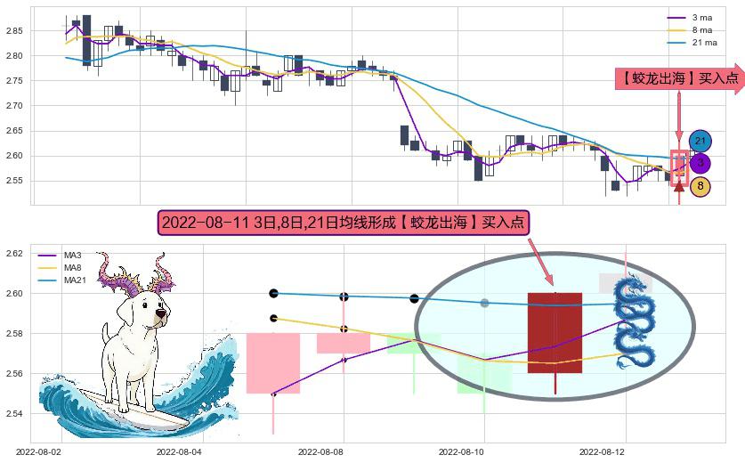 ⚀ 2022-08-11日显现 3日-8日-21日均线 【蛟龙出海】买入点 看多信号,后市看涨,买入