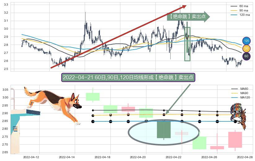 ⚀ 2022-04-21日显现 60日-90日-120日均线 【绝命跳】卖出点 看空信号,后市看跌,卖出