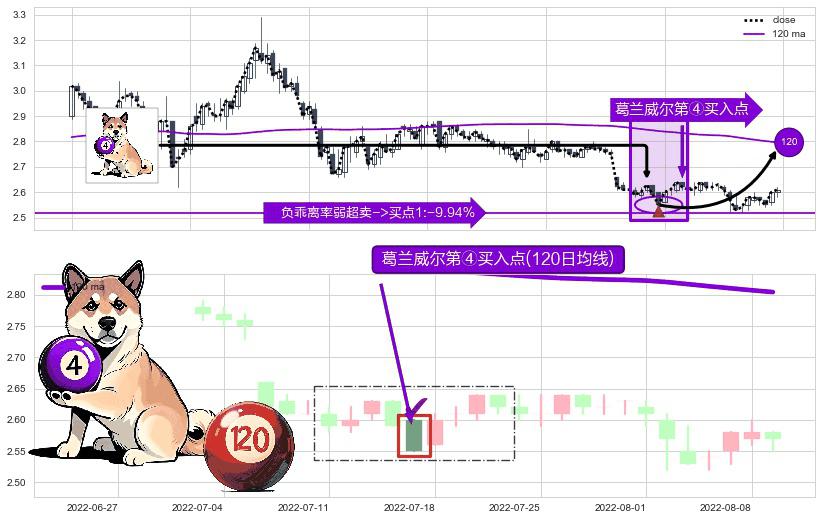 ⚀ 2022-07-15-日显现 葛兰威尔均线 120日均线 第④买入点 下降趋势均值回复的短线反弹信号,后市看涨,买进信号