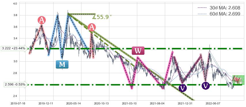 ♘ 阻力价格位2.596,可信任强度89.90%,距离最后交易2022-08-12形成的收盘价格2.610相差 -0.53%