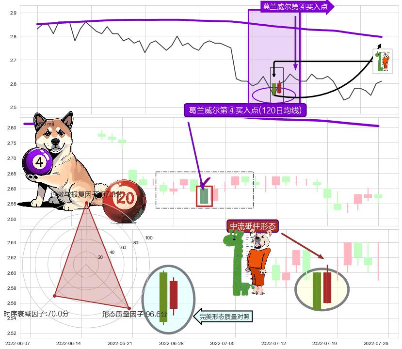 | 3 🅚:上涨螺旋桨形态 ➕ 🎢:葛兰威尔第④买入点买入点信号形成后,猜想后续走势持续反弹上升(均值回复) ☞ 看多信号 ⇥ 【均线】交织【🅚线】⇥ 综合量化分数: 51 | > |