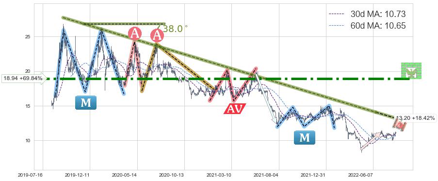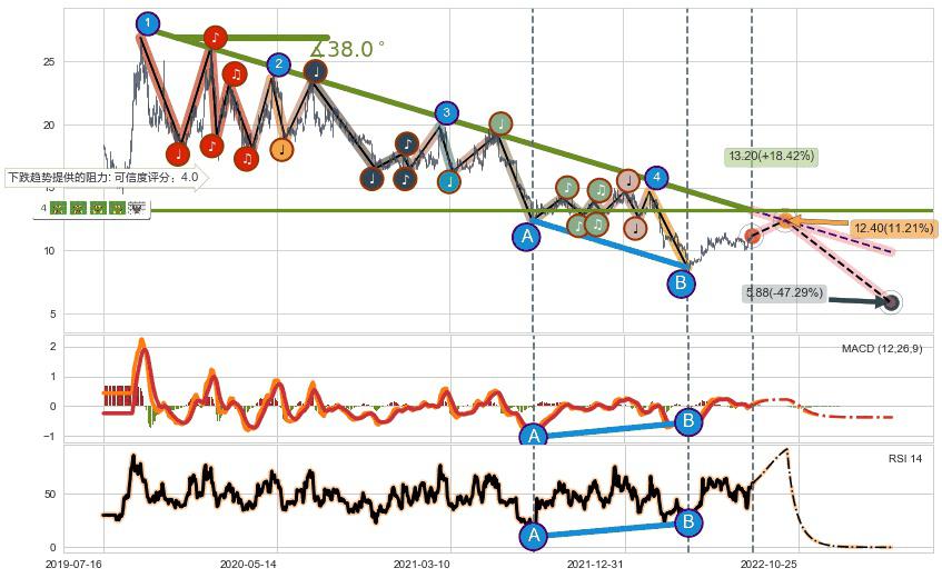 ♘ 阻力价格位18.94,可信任强度99.34%,距离最后交易2022-08-12形成的收盘价格11.15相差 +69.84%