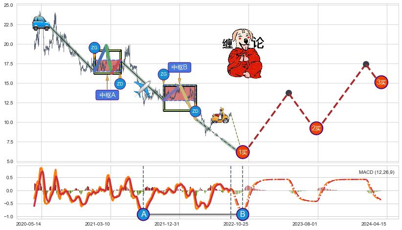 ➢ 【中枢B】:2021-10-28-2022-03-15,中枢由3笔构成,共93交易日, ZG=14.71, ZD=12.78