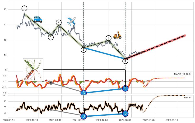 | 11 🅚:【高山滑雪】买入点 ➕ 🌊:波浪理论猜想下跌浪5已形成,猜想后续形成abc反弹上涨(均值回复) ☞ 看多信号 ⇥ 【均线】交织【图形】⇥ 综合量化分数: 65 | > |