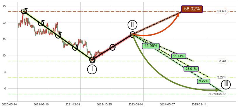 ➣ 大趋势循环浪继续向下概率43.98%