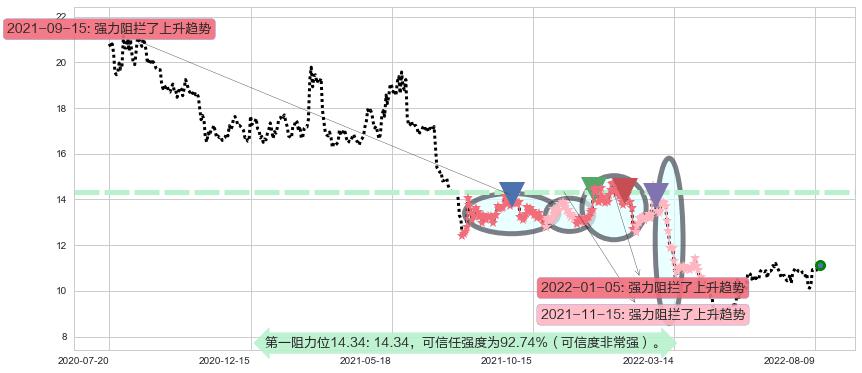 ♘ 阻力价格位14.34,可信任强度92.74%,距离最后交易2022-08-12形成的收盘价格11.15相差 +28.59%
