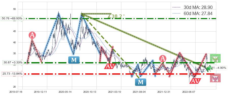 ♘ 阻力价格位30.87,可信任强度86.08%,距离最后交易2022-08-12形成的收盘价格29.87相差 +3.33%