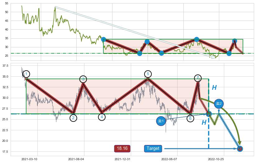 ➣ 【未确认突破,预测即将形成突破】下跌矩形整理起点:2020-10-13, 预测突破点:2022-09-08,形态共468交易日