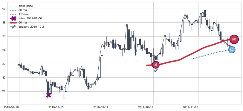 上涨趋势2019-07-18-2019-12-05,均线60确认关键支撑1处