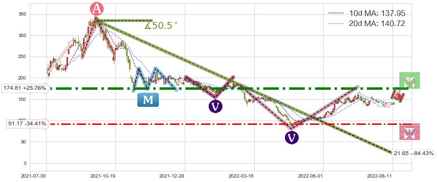♘ 阻力价格位174.81,可信任强度91.99%,距离最后交易2022-08-12形成的收盘价格139.00相差 +25.76%