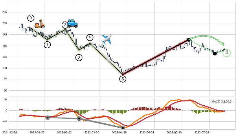 ➣ 第一, 三, 五浪下跌动能逐渐【增强变大】,趋势不断加固