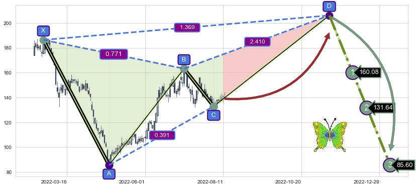 ➣ 未完成【蝴蝶】形态起点X: 2022-02-23, 已到达C点: 2022-08-03, 预测最终D点: 2022-11-15, 共183交易日