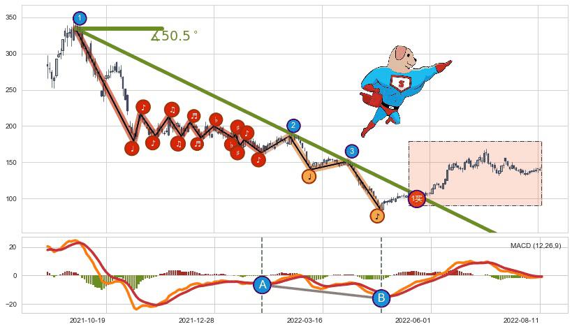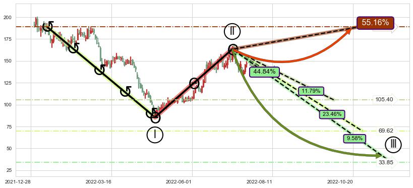 ➣ D点拟合预测价格206.12,距离最后交易收盘价格139.00相差 +48.28%