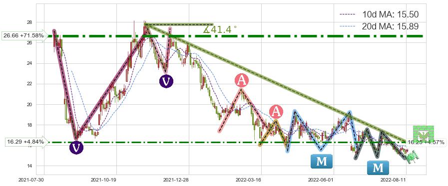 ♘ 阻力价格位16.29,可信任强度65.89%,距离最后交易2022-08-12形成的收盘价格15.54相差 +4.84%
