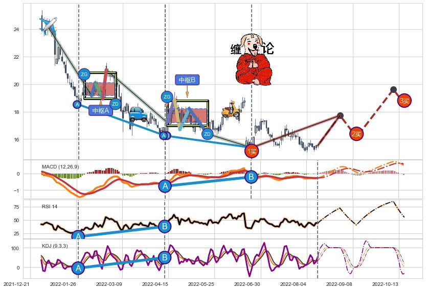 ➣ 【已完成】缠论 起点:2022-01-04,完成第1中枢A,完成第2中枢B,终点:2022-06-23,缠论共148交易日