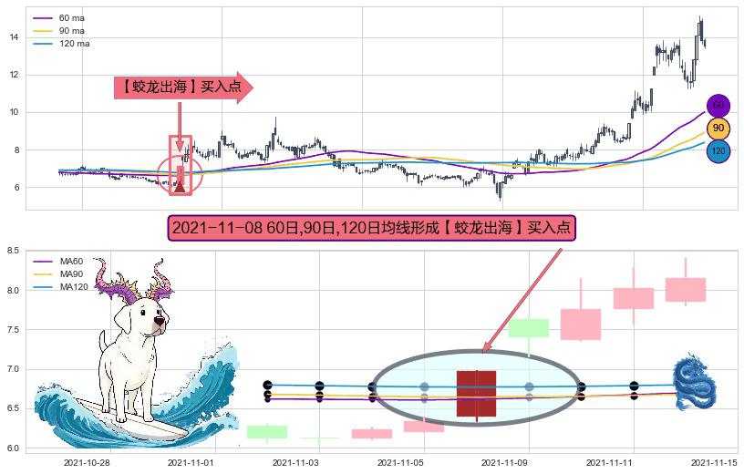 形态多维评估: ⚀ 2021-11-08日显现 60日-90日-120日均线 【蛟龙出海】买入点 看多信号,后市看涨,买入
