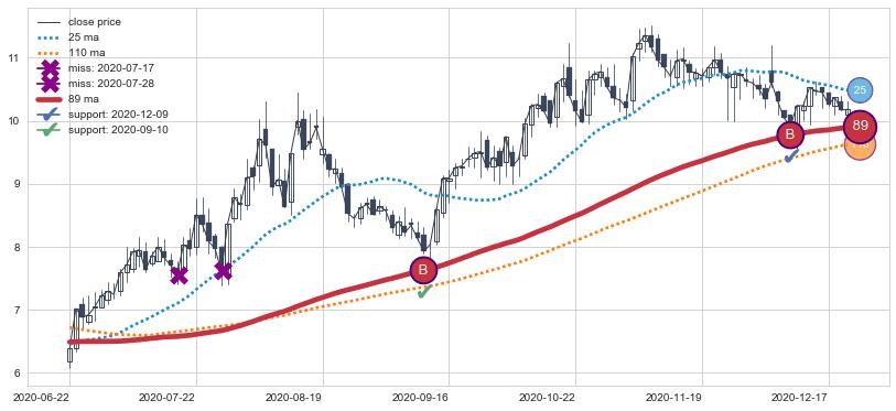 上涨趋势2020-06-22-2020-12-22,均线89确认关键支撑2处