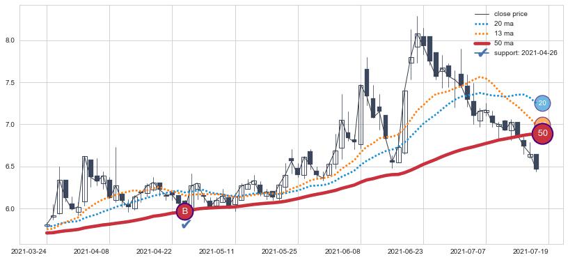 上涨趋势2021-03-24-2021-07-19,均线50确认关键支撑1处