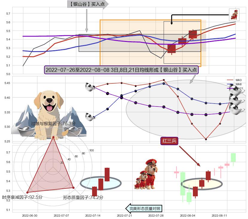 | 2 🅚:上涨两颗星 | 上涨三颗星 ➕ 🎢:【金银山谷】买入点均线组合买入点信号形成后,猜想后续突破上升,沿着向上的尖头三角上涨 ☞ 看多信号 ⇥ 【均线】交织【🅚线】⇥ 综合量化分数: 63 | > |