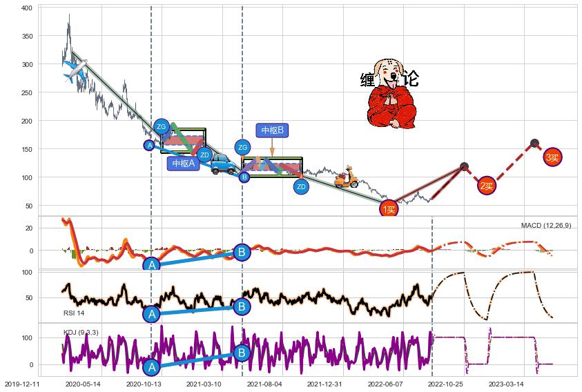| 14 🅚:【高山滑雪】买入点 ➕ ☯️:缠论买卖点下降缠中枢AB形成后猜想拐点1买已到达,猜想后续持续拉升(均值回复) ☞ 看多信号 ⇥ 【均线】交织【图形】⇥ 综合量化分数: 52 | > |