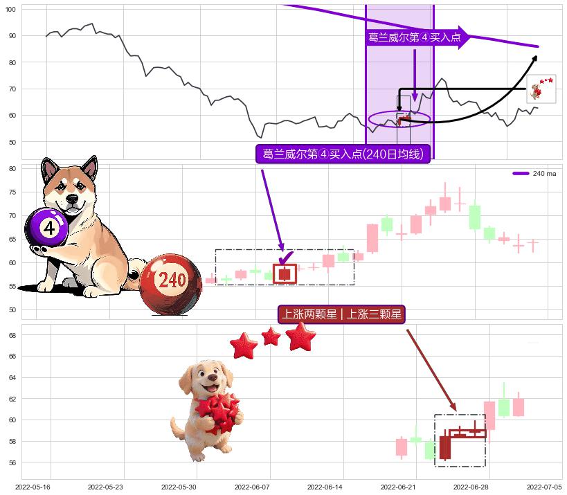 | 3 🅚:早晨之星(黎明之星) ➕ 🎢:葛兰威尔第④买入点买入点信号形成后,猜想后续走势持续反弹上升(均值回复) ☞ 看多信号 ⇥ 【均线】交织【🅚线】⇥ 综合量化分数: 52 | > |