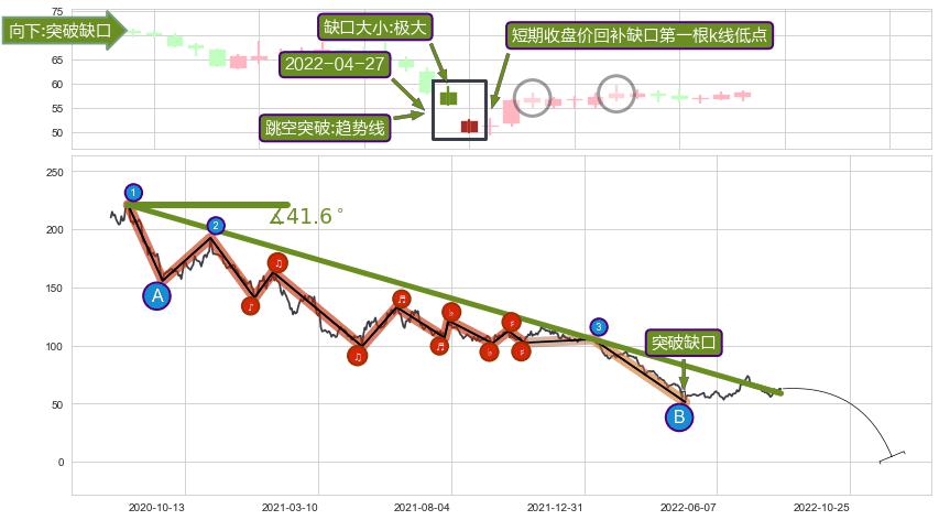 ➢ 2022-04-27形成:向下跳空【突破】缺口