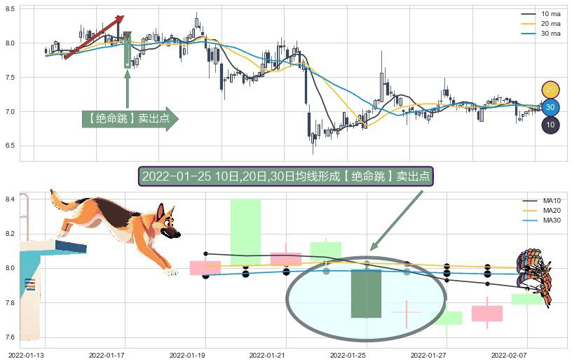 ⚀ 2022-01-25日显现 10日-20日-30日均线 【绝命跳】卖出点 看空信号,后市看跌,卖出