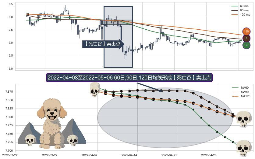 ⚀ 2022-04-11-日至2022-05-06-日显现 60日-90日-120日均线 【死亡谷】卖出点 看空信号,后市看跌,卖出