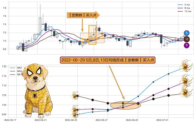 ⚀ 2022-06-29日显现 5日-8日-13日均线 【金蜘蛛】买入点 看多信号,后市看涨,买入