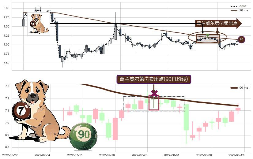 ⚀ 2022-07-26-日显现 葛兰威尔均线 90日均线 第⑦卖出点 下降趋势的中继信号,后市看跌,卖出信号
