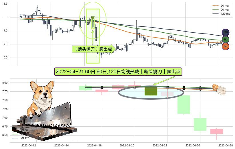 ⚀ 2022-04-21日显现 60日-90日-120日均线 【断头铡刀】卖出点 看空信号,后市看跌,卖出