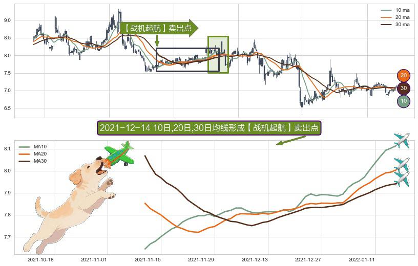 ⚀ 2021-11-10日-2022-01-17日显现 10日-20日-30日均线 【战机起航】卖出点 看空信号,后市看跌,卖出