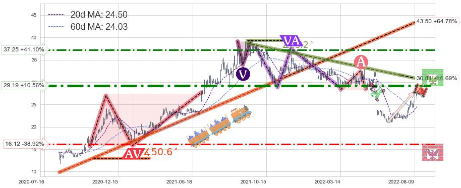 ➢ 【仅预测突破】最后价格:26.40与预测突破价格:30.58→【空间较大】后续最小【整理】第一目标价格→(2022-12-19: 45.81 )