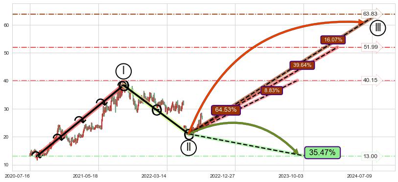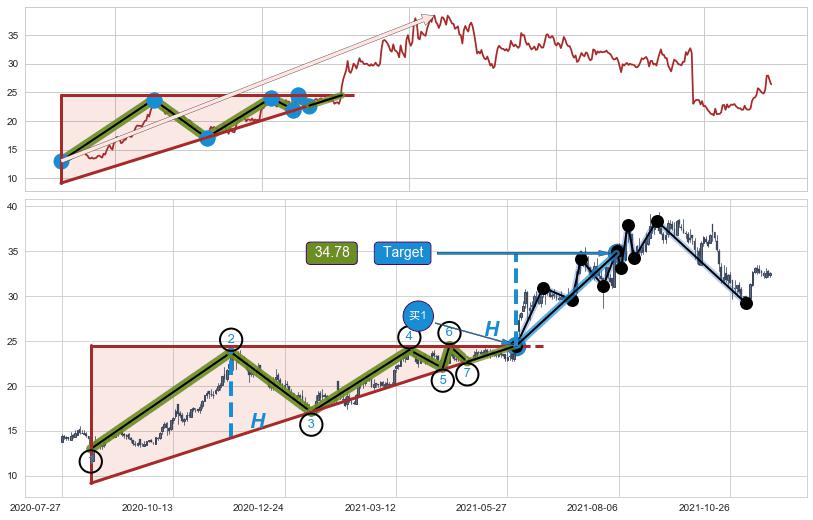 ➣ 最小中继整理涨幅→𝐇: 15.23 (𝐇旗杆的长度:旗杆起点→顶点)