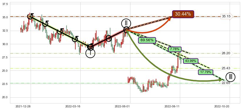 ➣ 【已达成】最小【整理】第一目标价格→(2022-05-30: 26.79 ), 后续继续【整理】下跌动力微弱,下跌较小