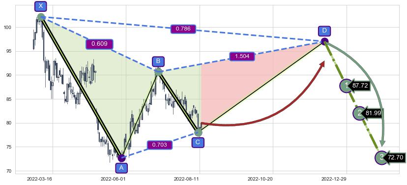 ➣ 未完成【伽利】形态起点X: 2022-03-04, 已到达C点: 2022-08-10, 预测最终D点: 2022-12-08, 共194交易日