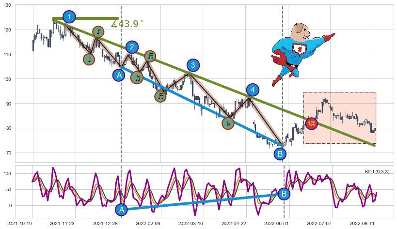 ➣ D点拟合预测价格97.01,距离最后交易收盘价格79.98相差 +21.30%