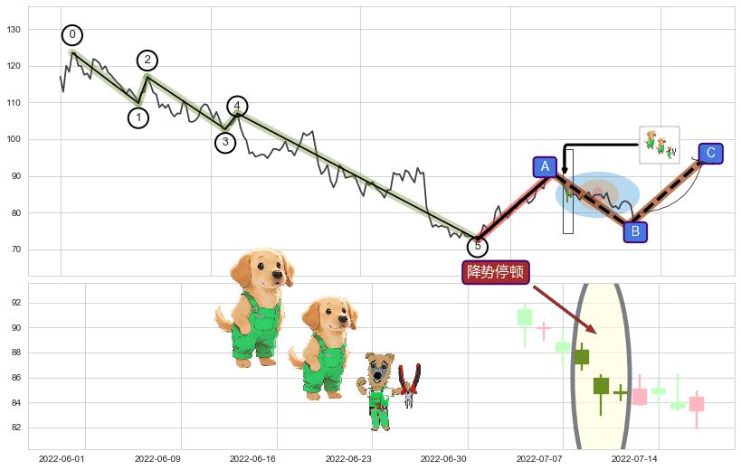 ➢ 最后的下跌趋势2021-11-04至2022-06-16:存在突破迹象,后续小反弹或者反转上涨