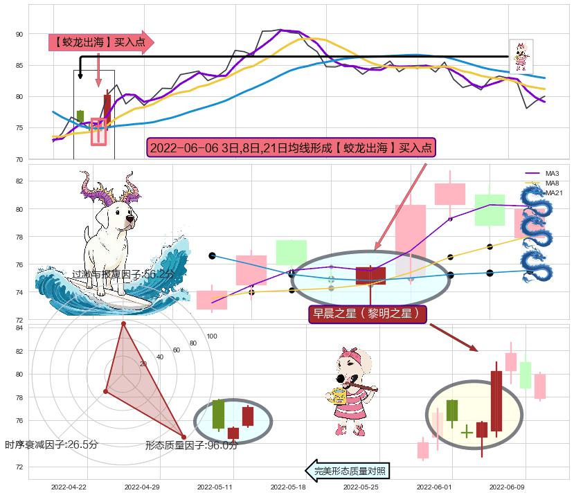 | 3 🅚:塔形底 | 圆底 ➕ 🎢:【蛟龙出海】买入点均线组合买入点信号形成后,猜想后续阻力突破,后市持续上涨 ☞ 看多信号 ⇥ 【均线】交织【🅚线】⇥ 综合量化分数: 53 | > |