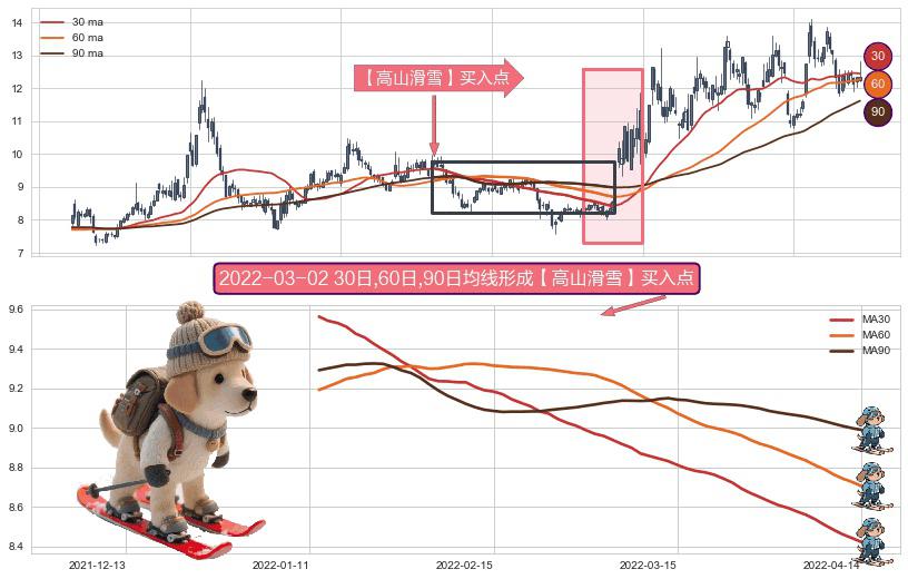 形态多维评估: ⚀ 2022-01-12日-2022-04-14日显现 30日-60日-90日均线 【高山滑雪】买入点 看多信号,后市看涨,买入