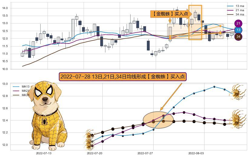 形态多维评估: ⚀ 2022-07-28日显现 13日-21日-34日均线 【金蜘蛛】买入点 看多信号,后市看涨,买入