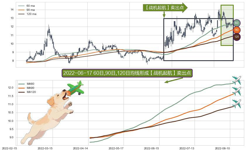 形态多维评估: ⚀ 2022-04-15日-2022-08-12日显现 60日-90日-120日均线 【战机起航】卖出点 看空信号,后市看跌,卖出
