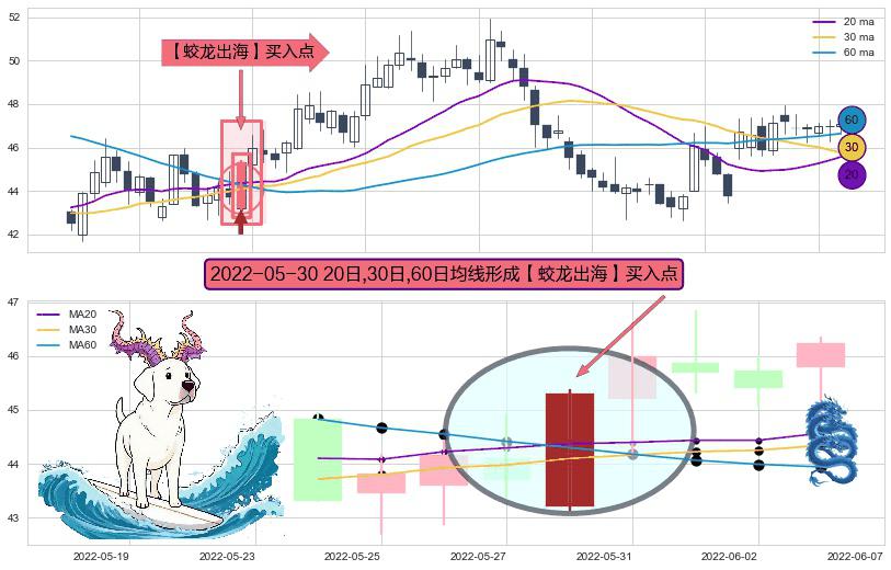 形态多维评估: ⚀ 2022-05-30日显现 20日-30日-60日均线 【蛟龙出海】买入点 看多信号,后市看涨,买入