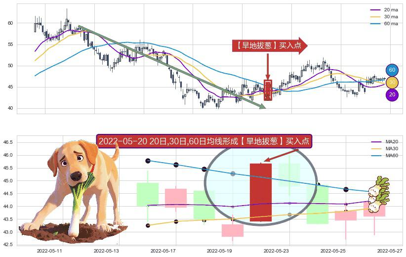 形态多维评估: ⚀ 2022-05-20日显现 20日-30日-60日均线 【旱地拔葱】买入点 看多信号,后市看涨,买入